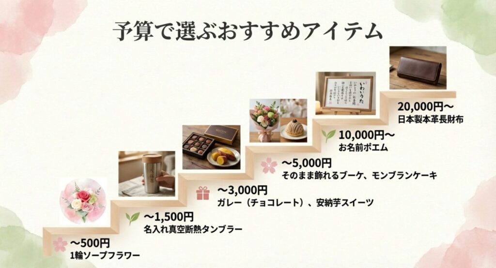 予算の階層別に、クオリティの高いおすすめ商品を10個厳選しました。無理のない範囲で、最高の贈り物を見つけてくださいね。