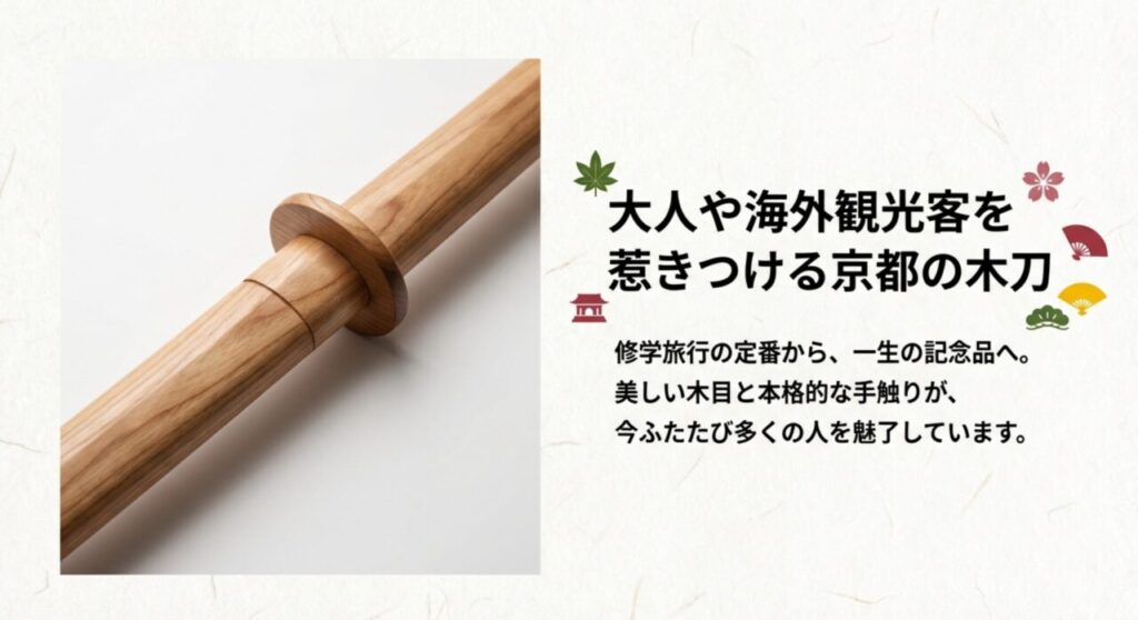 実用性だけでなく、「修学旅行の京都で木刀を買う」という定番のイベントを友人たちと楽しむコミュニケーションツールとしても大活躍してくれます。
