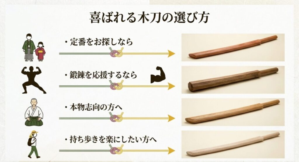 - 渡す相手や予算に合わせた最適な木刀の選び方